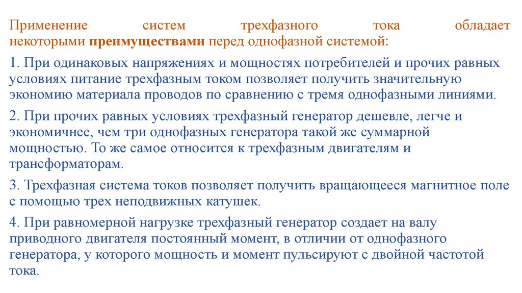 Тема 2.2.2 Понятие о многофазных системах переменноготока. Преимущество трехфазной системы над однофазной