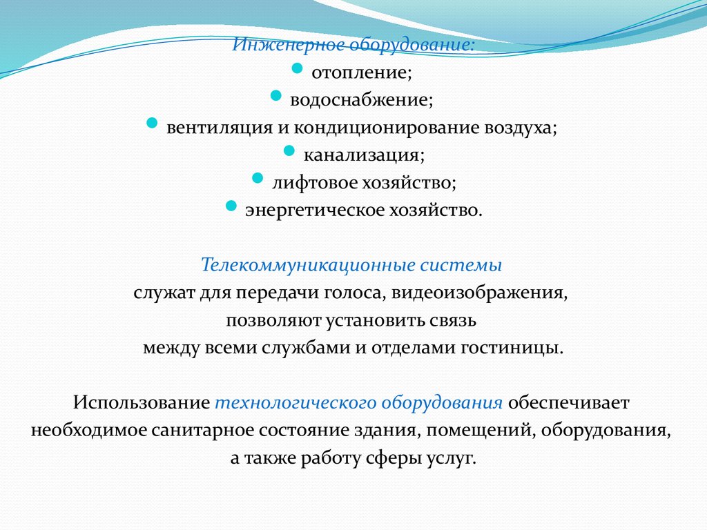 Гостиницы должны быть оснащеныоборудованием, обеспечивающим высокий