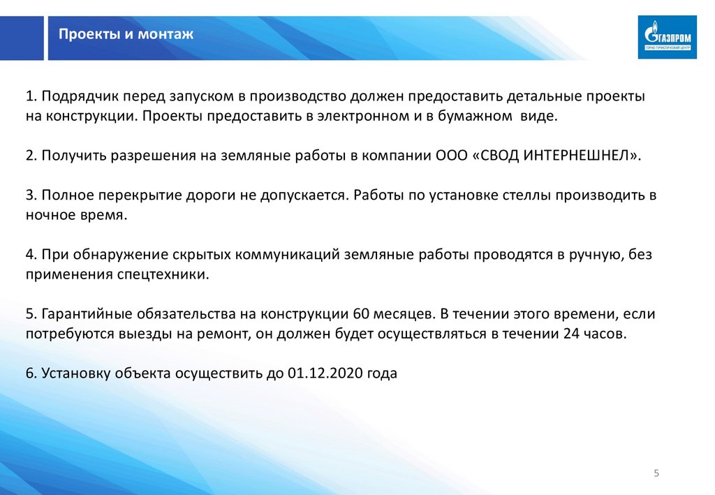 5. Гарантийные обязательства на конструкции 60 месяцев. В течении этого времени, если