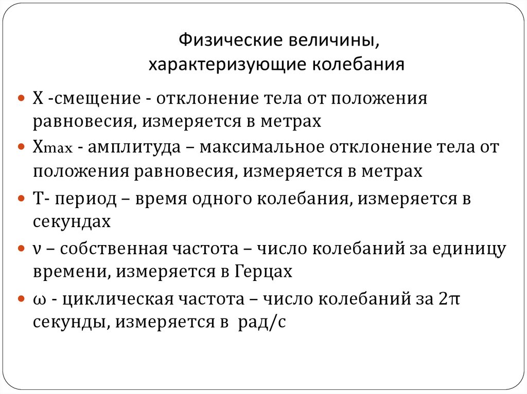 Физические величины,характеризующие колебания