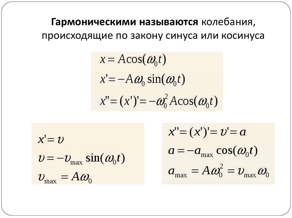 Гармоническими называются колебания,происходящие по закону синуса или косинуса