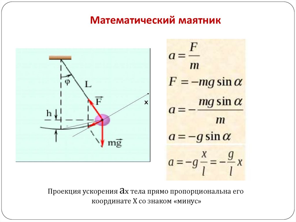 Математический маятникПроекция ускорения ах тела прямо пропорциональна его