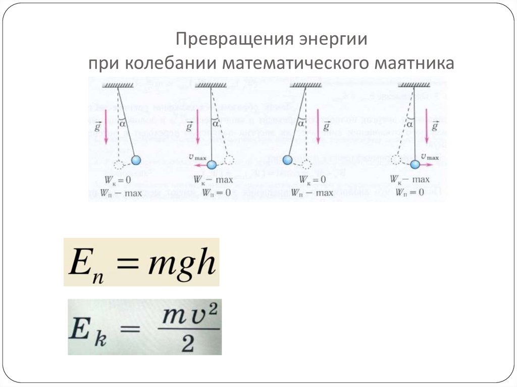 Превращения энергиипри колебании математического маятника