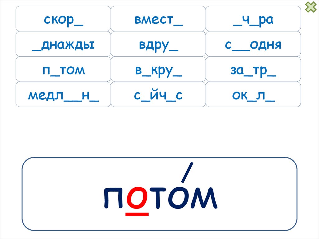 Технологический приём «Экран»Тренажёр по русскому языку 2 класс