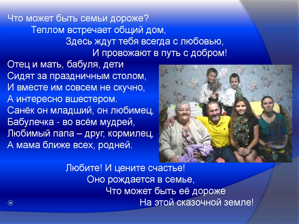 Что может быть семьи дороже?Теплом встречает общий дом,