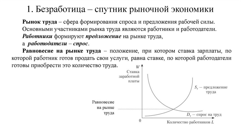 1. Безработица – спутник рыночной экономикиРынок труда – сфера формирования спроса и предложения рабочей силы.
