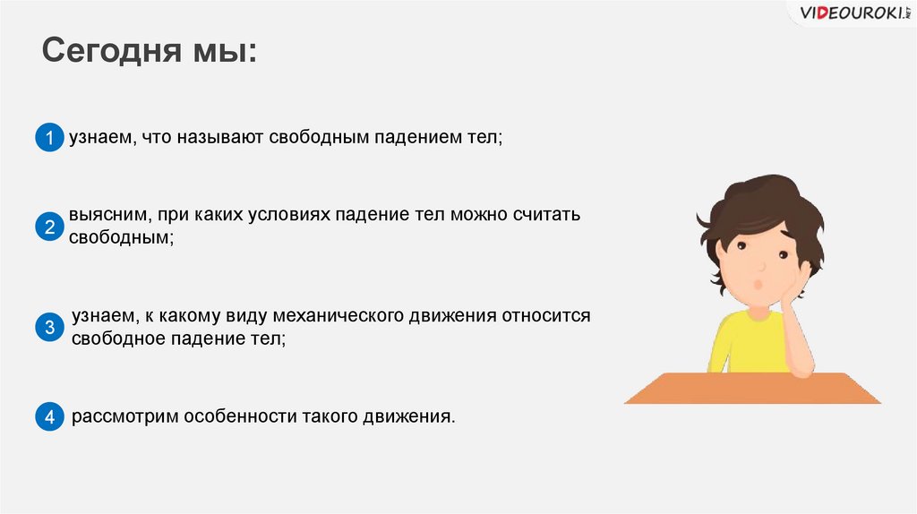Сегодня мы:1 узнаем, что называют свободным падением тел;