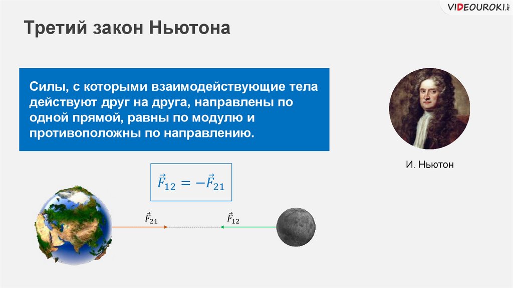 Третий закон НьютонаCилы, с которыми взаимодействующие тела