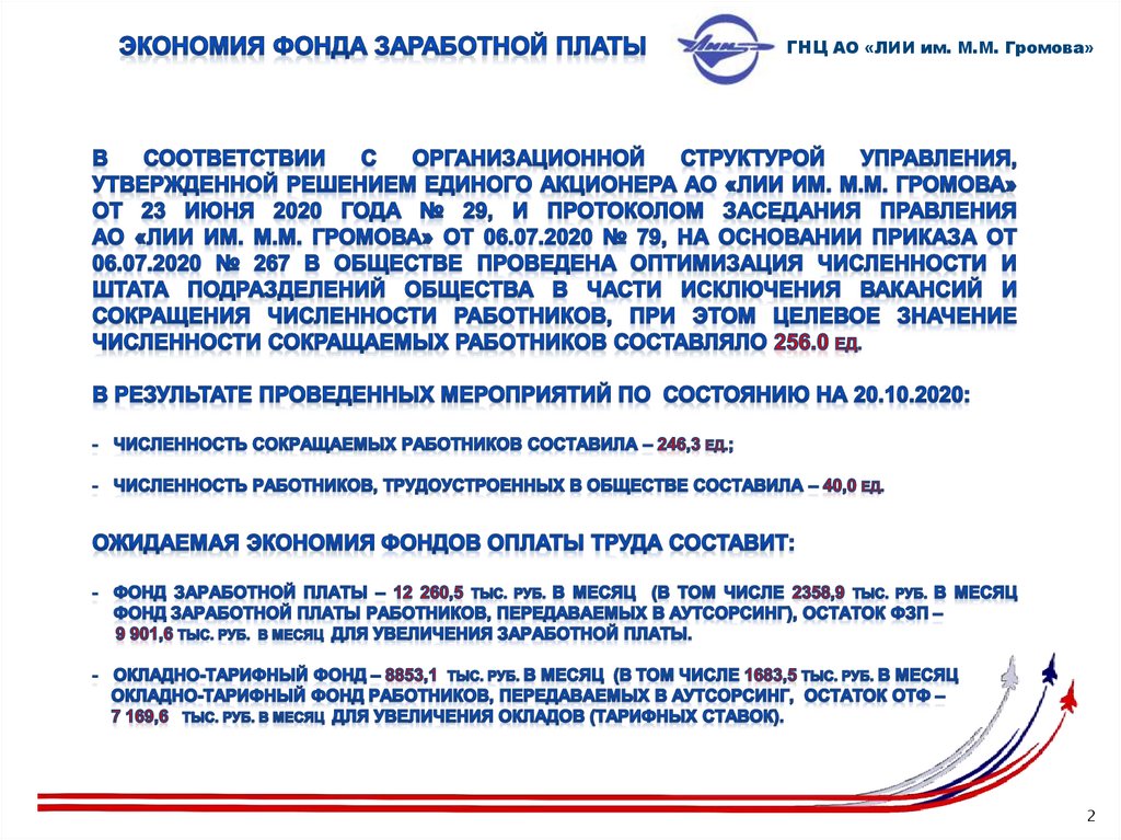 Повышение заработной платы. ГНЦ АО «ЛИИ им. М.М. Громова»