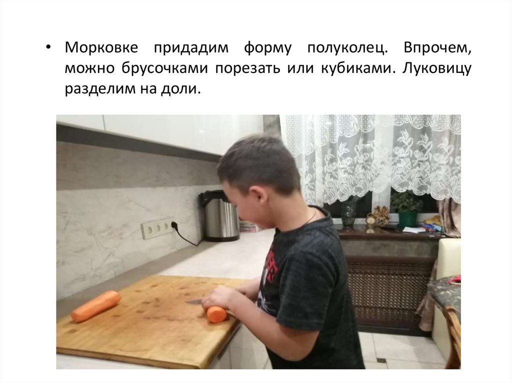 • Морковке придадим форму полуколец. Впрочем,можно брусочками порезать или кубиками. Луковицу