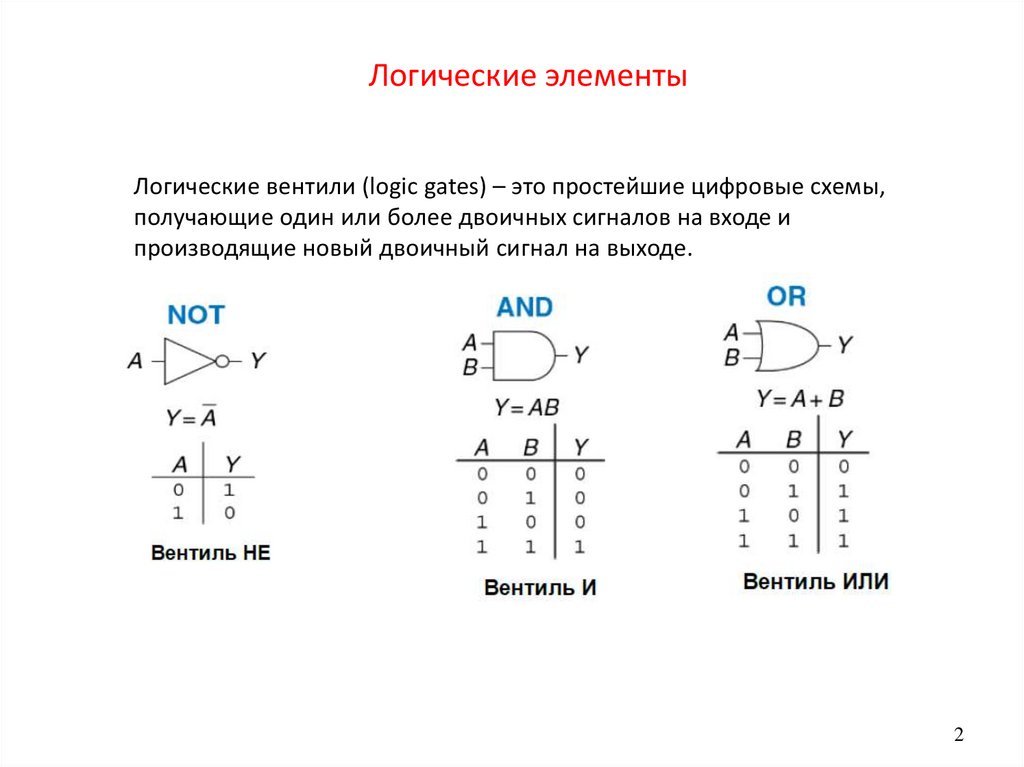 Логические элементыЛогические вентили (logic gates) – это простейшие цифровые схемы,
