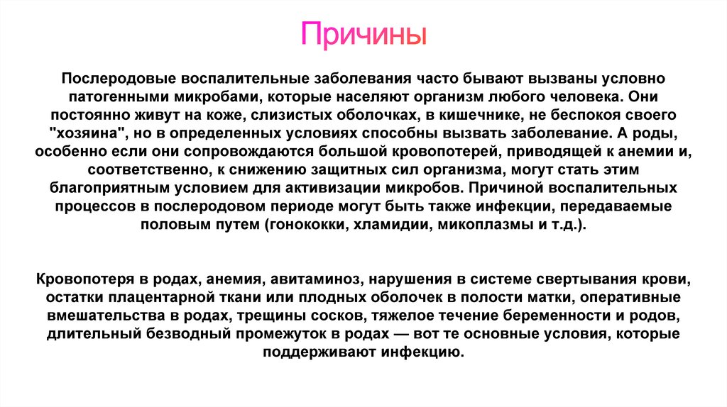 процессов в послеродовом периоде могут быть также инфекции, передаваемые