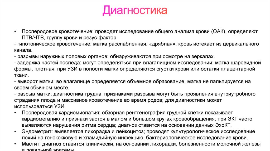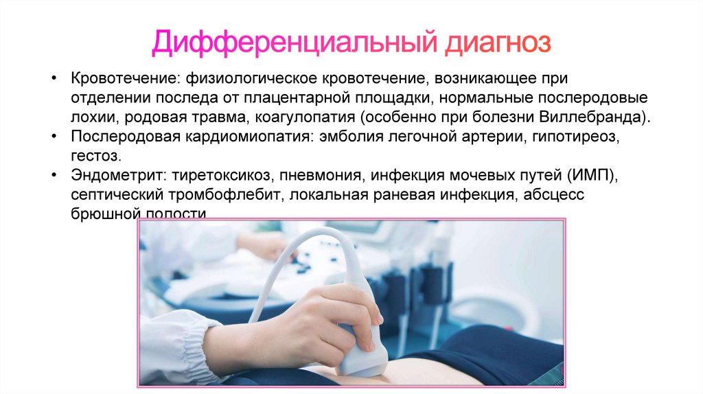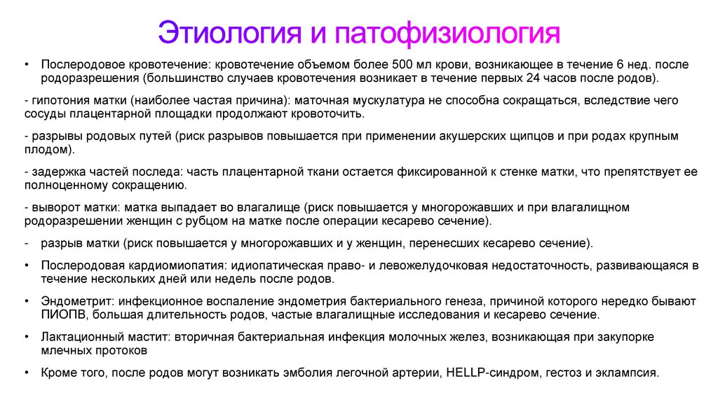 лохии, родовая травма, коагулопатия (особенно при болезни Виллебранда).
