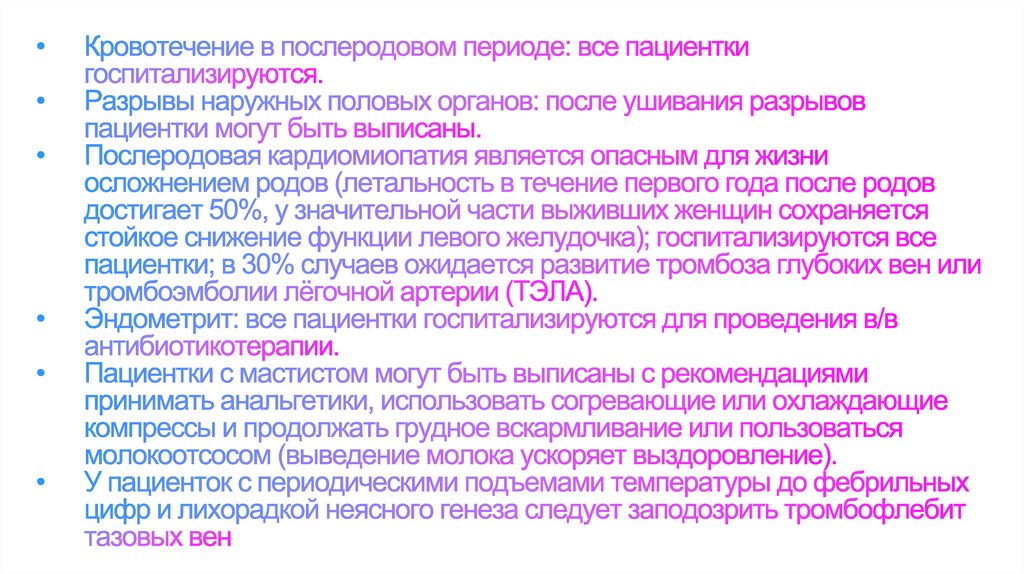 течение нескольких дней или недель после родов.