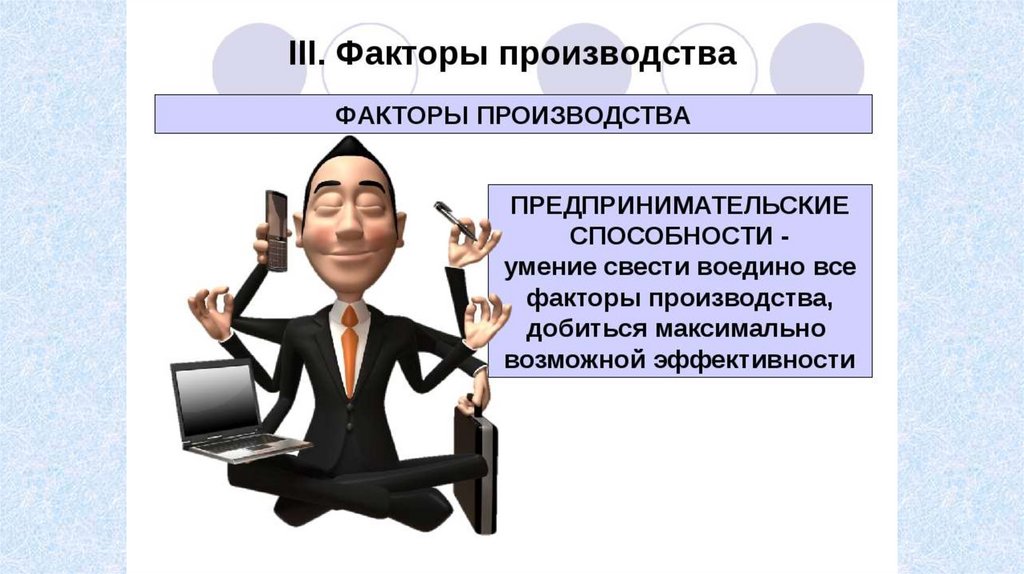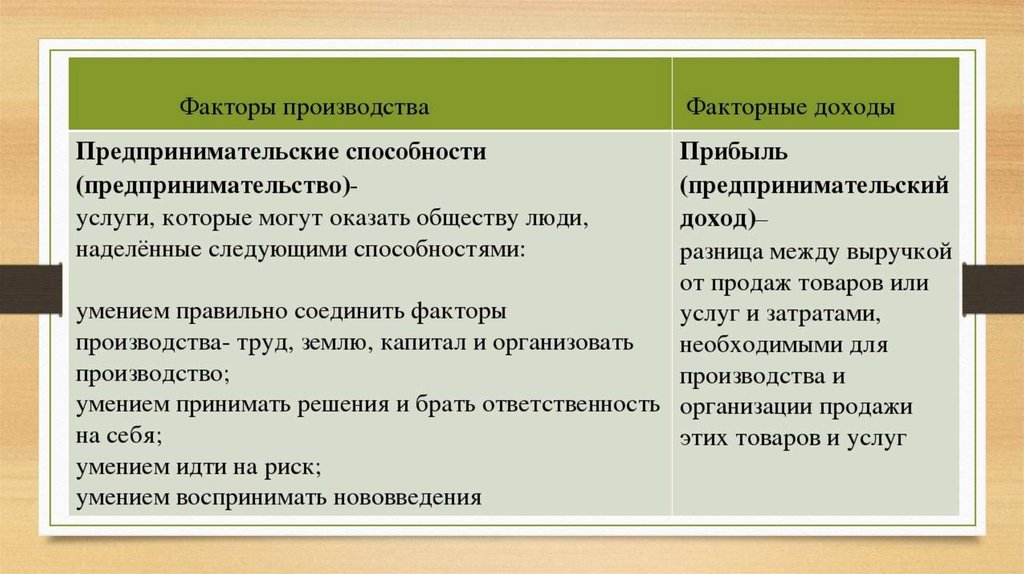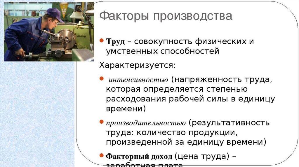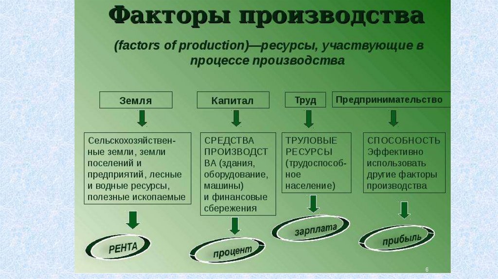 4) Факторы производства — это основные компоненты, используемые в процессе