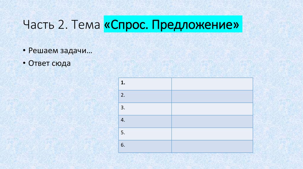 Часть 2. Тема «Спрос. Предложение»• Решаем задачи…