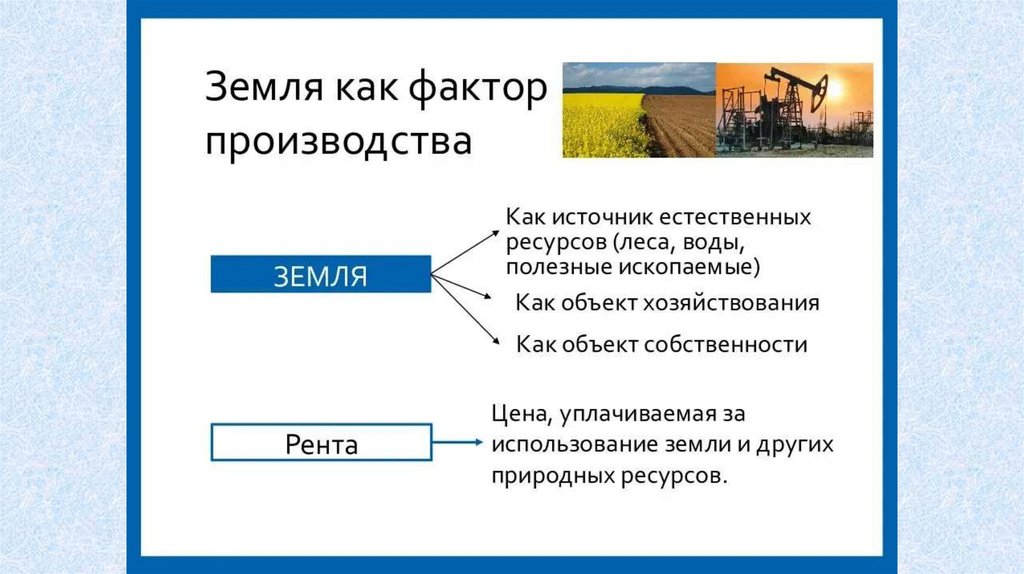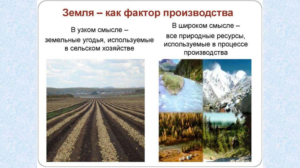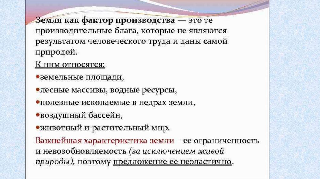 5) Земля как фактор производства приносит своему владельцу доход в виде