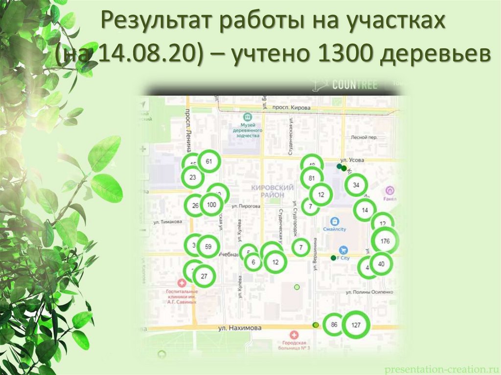 Результат работы на участках(на 14.08.20) – учтено 1300 деревьев