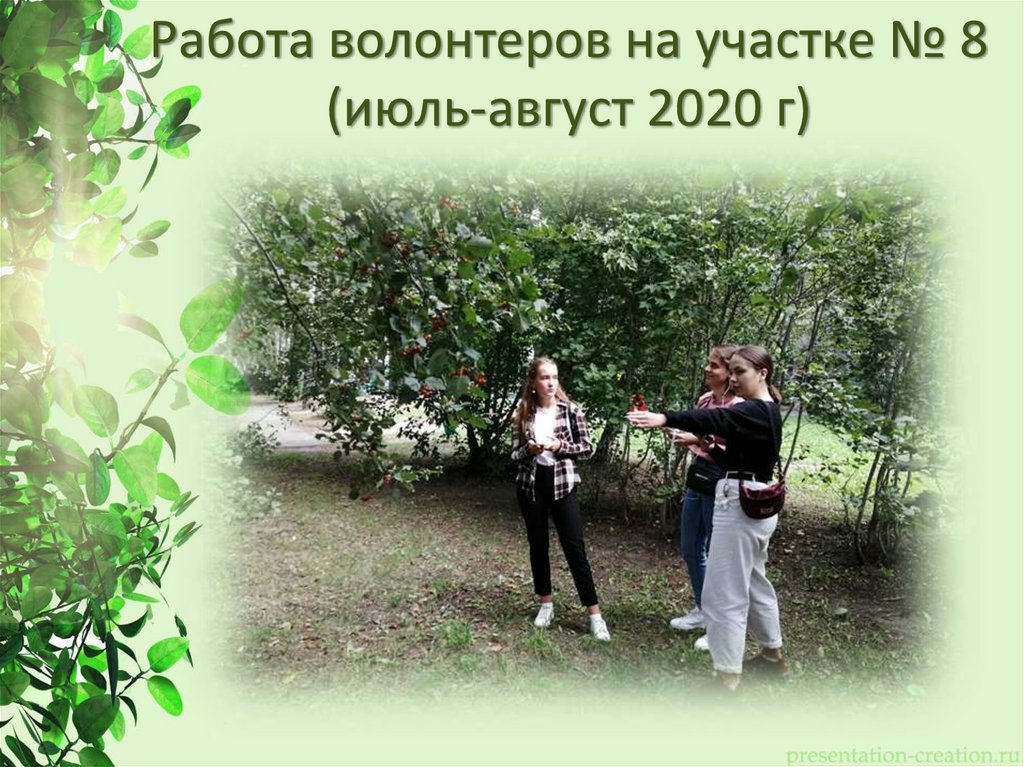 Работа волонтеров на участке № 8(июль-август 2020 г)