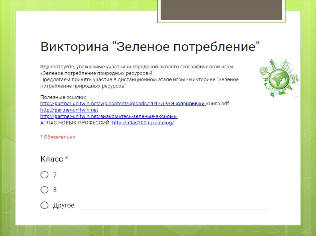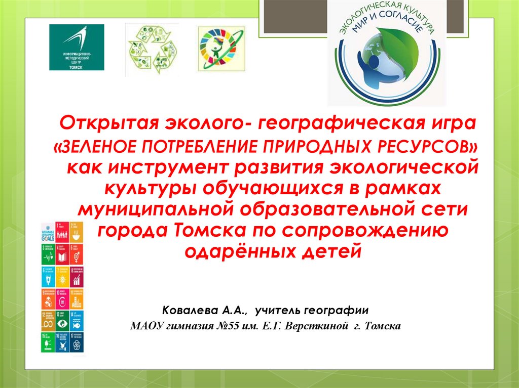 Открытая эколого- географическая игра«ЗЕЛЕНОЕ ПОТРЕБЛЕНИЕ ПРИРОДНЫХ РЕСУРСОВ»