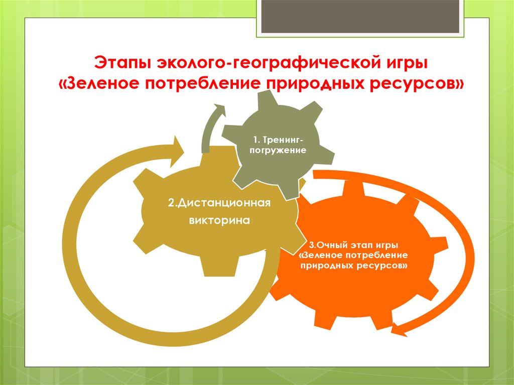 Этапы эколого-географической игры«Зеленое потребление природных ресурсов»