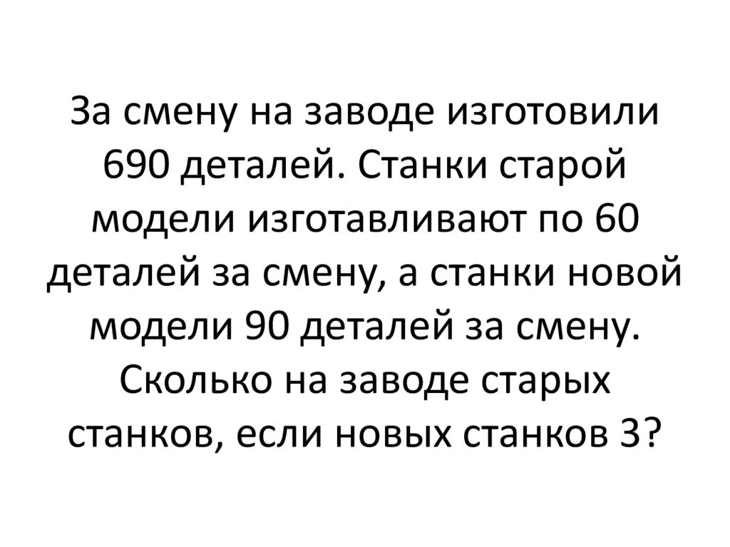 За смену на заводе изготовили690 деталей. Станки старой