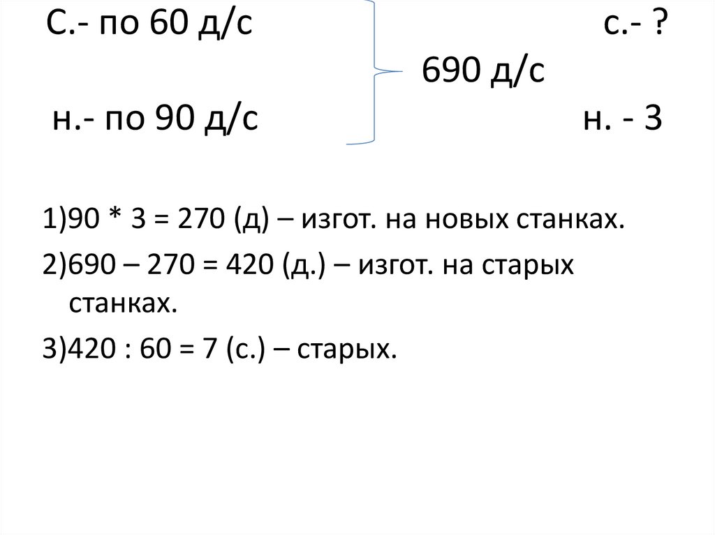 2)690 – 270 = 420 (д.) – изгот. на старых