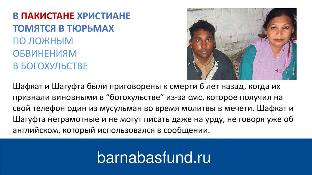 В ПАКИСТАНЕ ХРИСТИАНЕТОМЯТСЯ В ТЮРЬМАХ