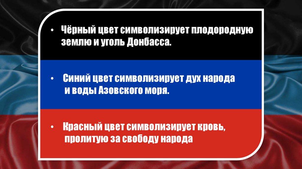 • Чёрный цвет символизирует плодороднуюземлю и уголь Донбасса.