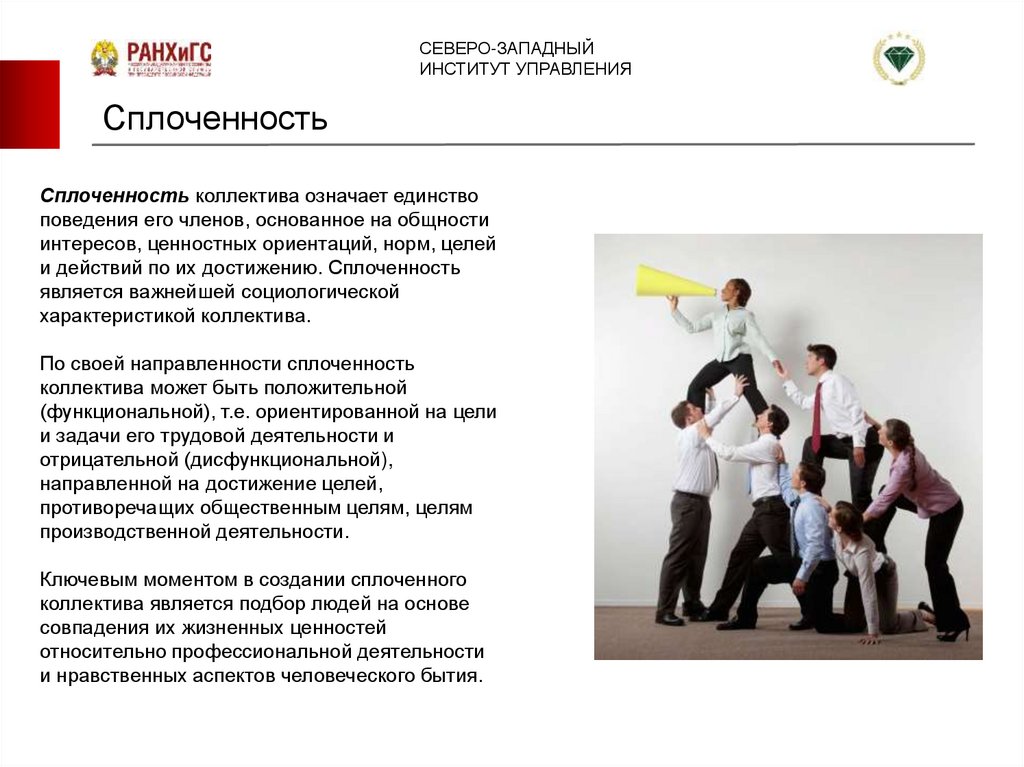 и действий по их достижению. Сплоченность