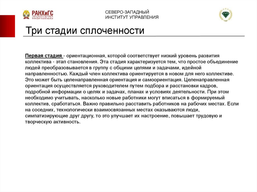 Три стадии сплоченности