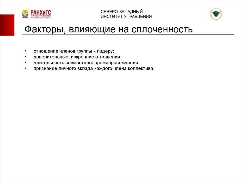 Факторы, влияющие на сплоченность