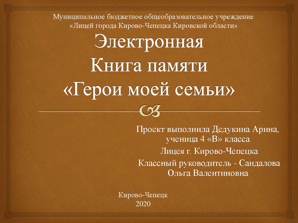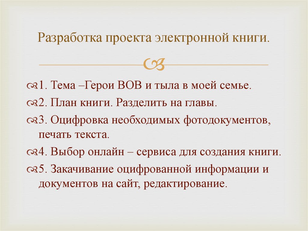 Разработка проекта электронной книги.1. Тема –Герои ВОВ и тыла в моей семье.