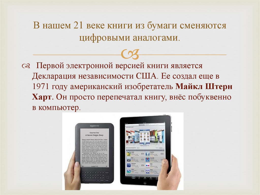 В нашем 21 веке книги из бумаги сменяютсяцифровыми аналогами.