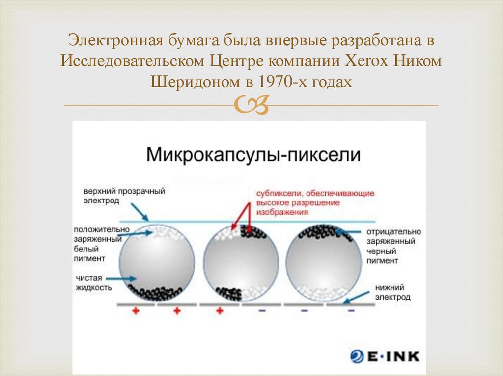 Электронная бумага была впервые разработана вИсследовательском Центре компании Xerox Ником