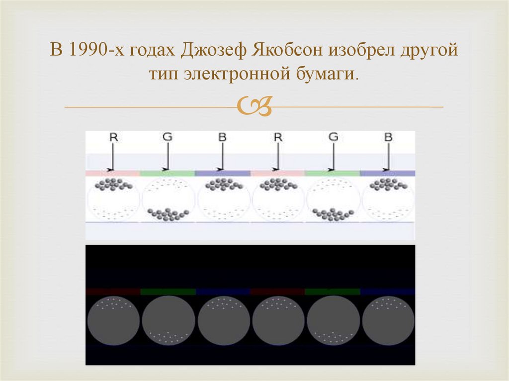 В 1990-х годах Джозеф Якобсон изобрел другойтип электронной бумаги.