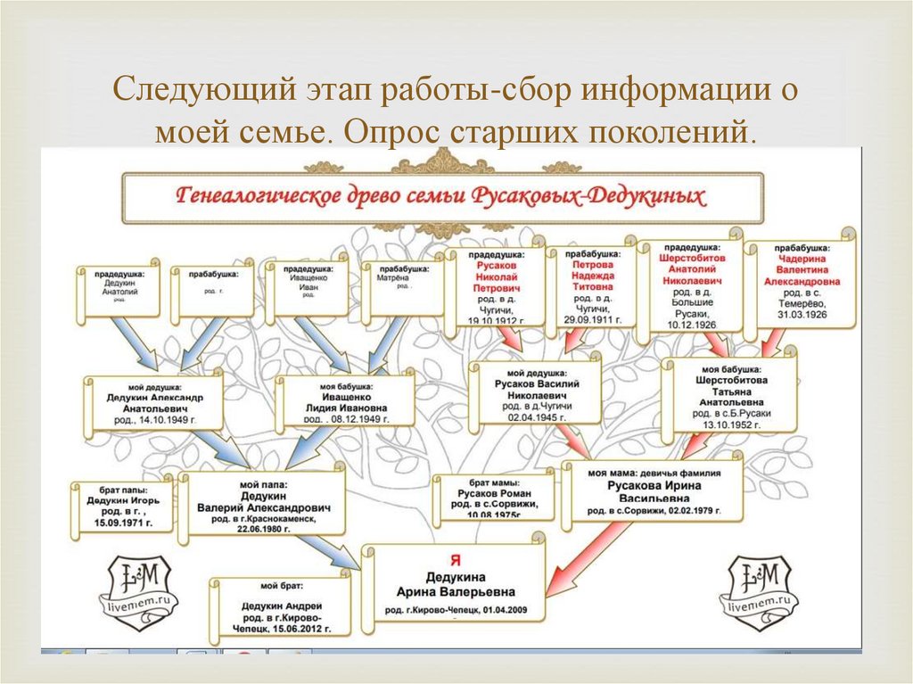 Следующий этап работы-сбор информации омоей семье. Опрос старших поколений.