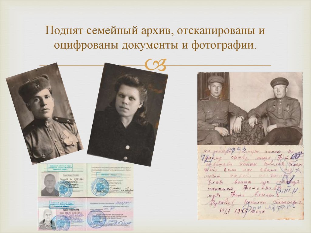 Поднят семейный архив, отсканированы иоцифрованы документы и фотографии.