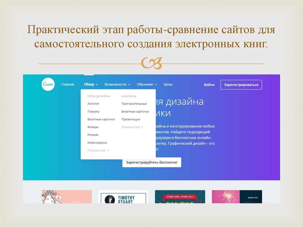 Практический этап работы-сравнение сайтов длясамостоятельного создания электронных книг.