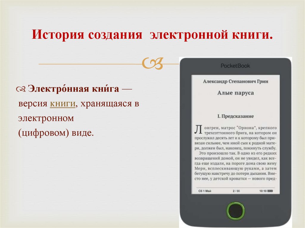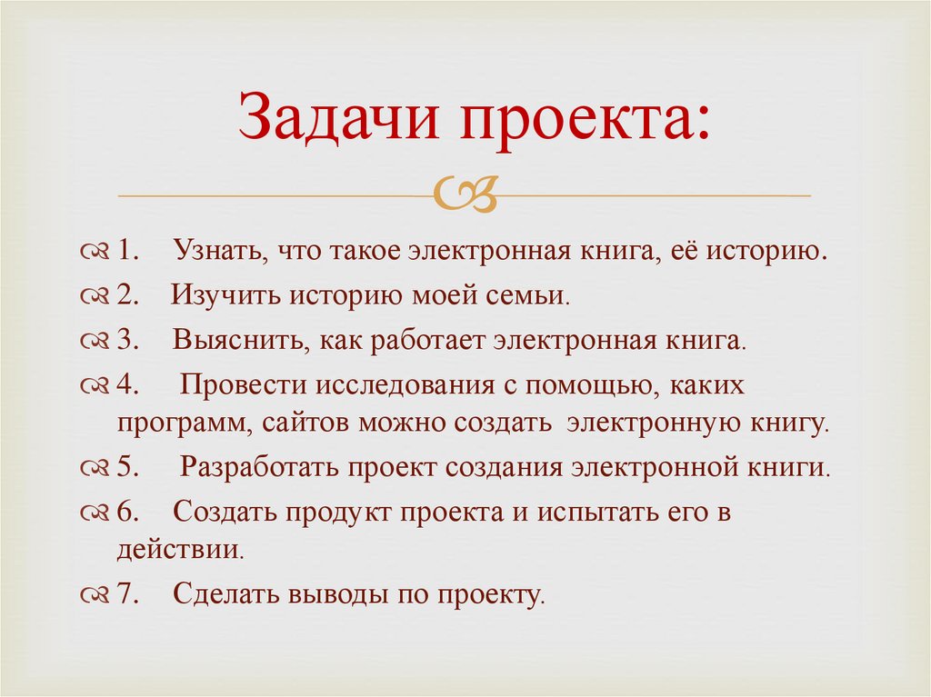 Задачи проекта:1. Узнать, что такое электронная книга, её историю.
