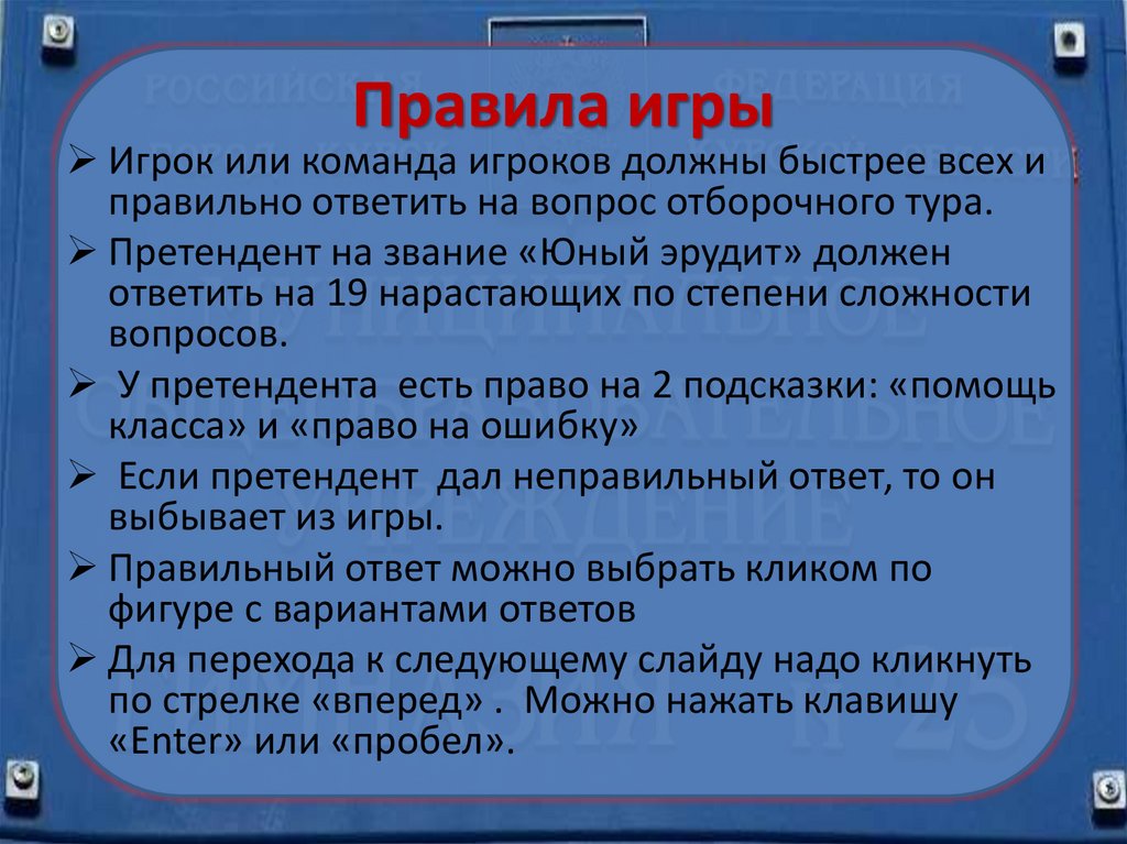 Правила игрыИгрок или команда игроков должны быстрее всех и