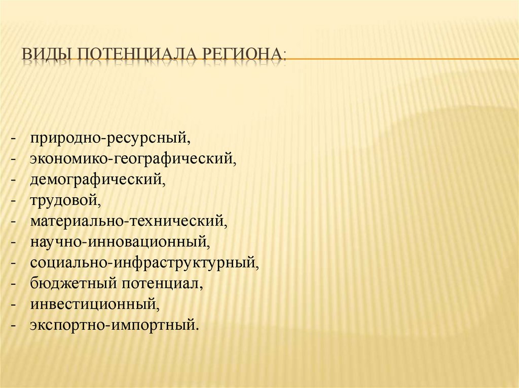ВИДЫ ПОТЕНЦИАЛА РЕГИОНА:-