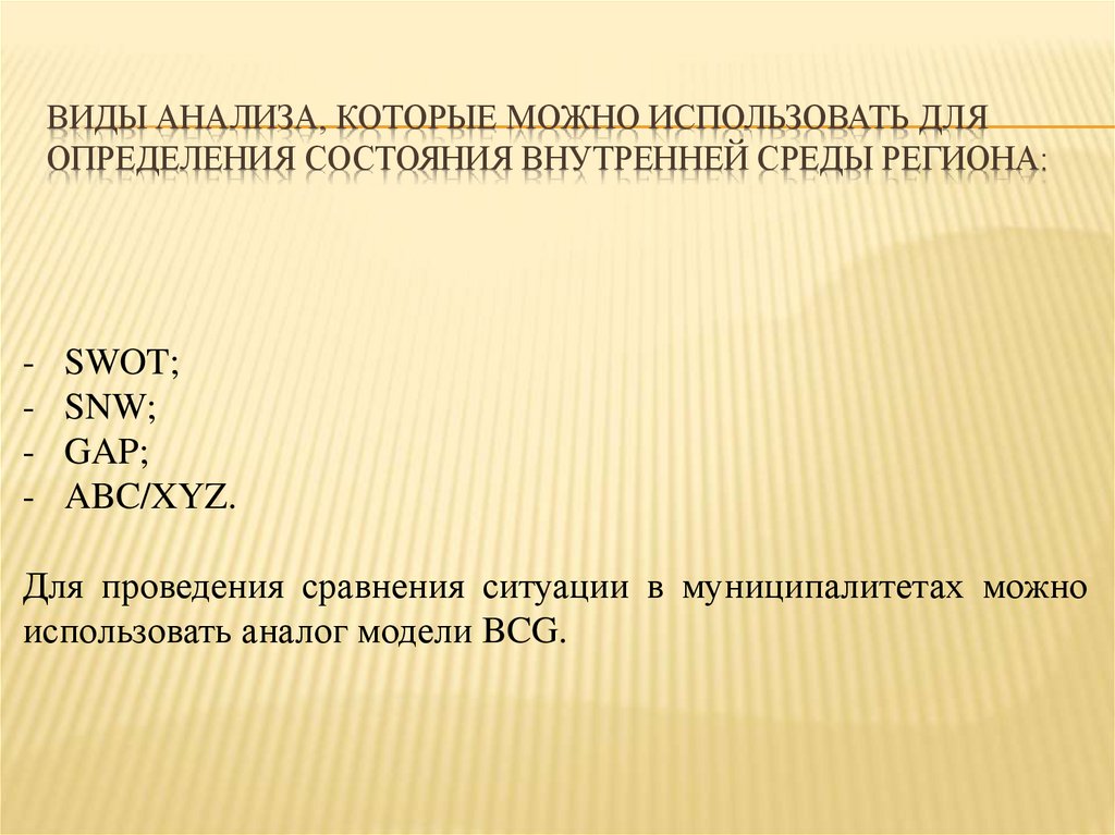 ВИДЫ АНАЛИЗА, КОТОРЫЕ МОЖНО ИСПОЛЬЗОВАТЬ ДЛЯОПРЕДЕЛЕНИЯ СОСТОЯНИЯ ВНУТРЕННЕЙ СРЕДЫ РЕГИОНА: