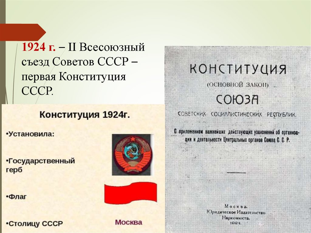 1924 г. – II Всесоюзныйсъезд Советов СССР –