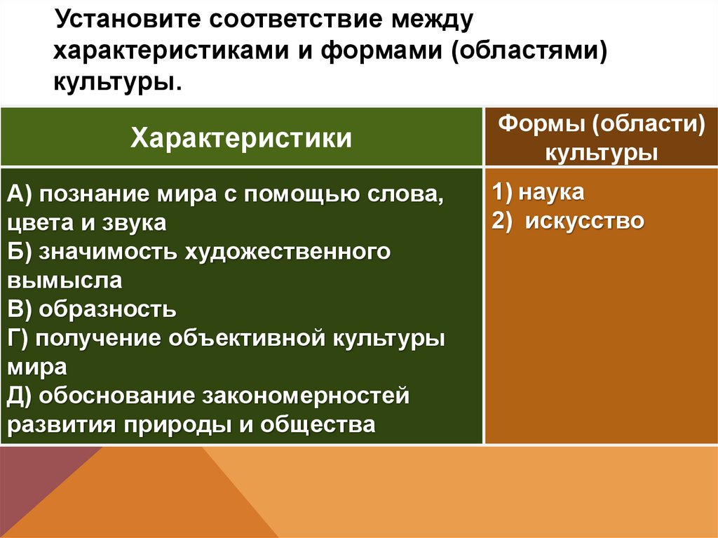 Установите соответствие междухарактеристиками и формами (областями)