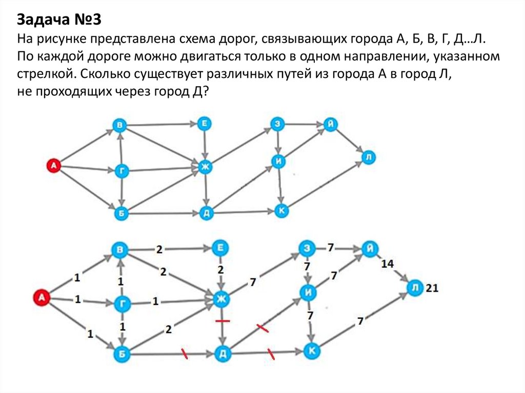 Задача №3На рисунке представлена схема дорог, связывающих города А, Б, В, Г, Д…Л.