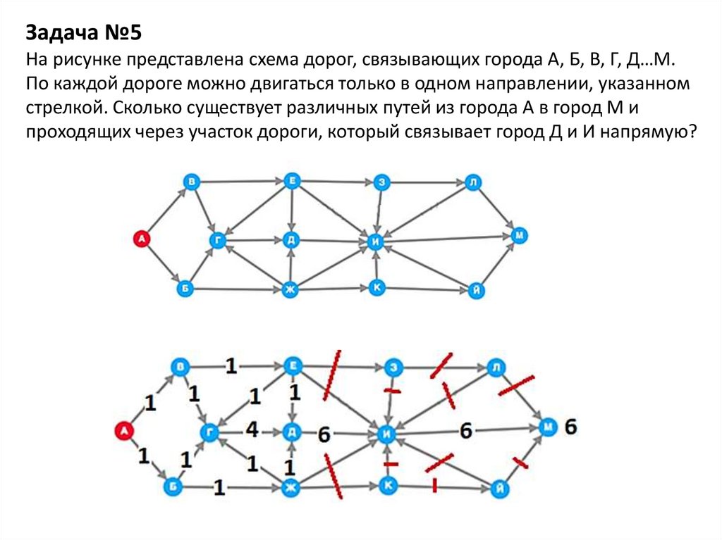 Задача №5На рисунке представлена схема дорог, связывающих города А, Б, В, Г, Д…М.