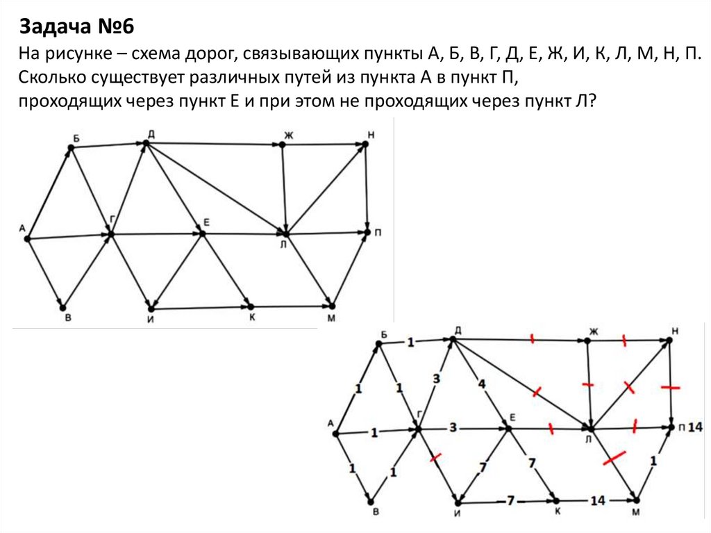 Задача №6На рисунке – схема дорог, связывающих пункты А, Б, В, Г, Д, Е, Ж, И, К, Л, М, Н, П.