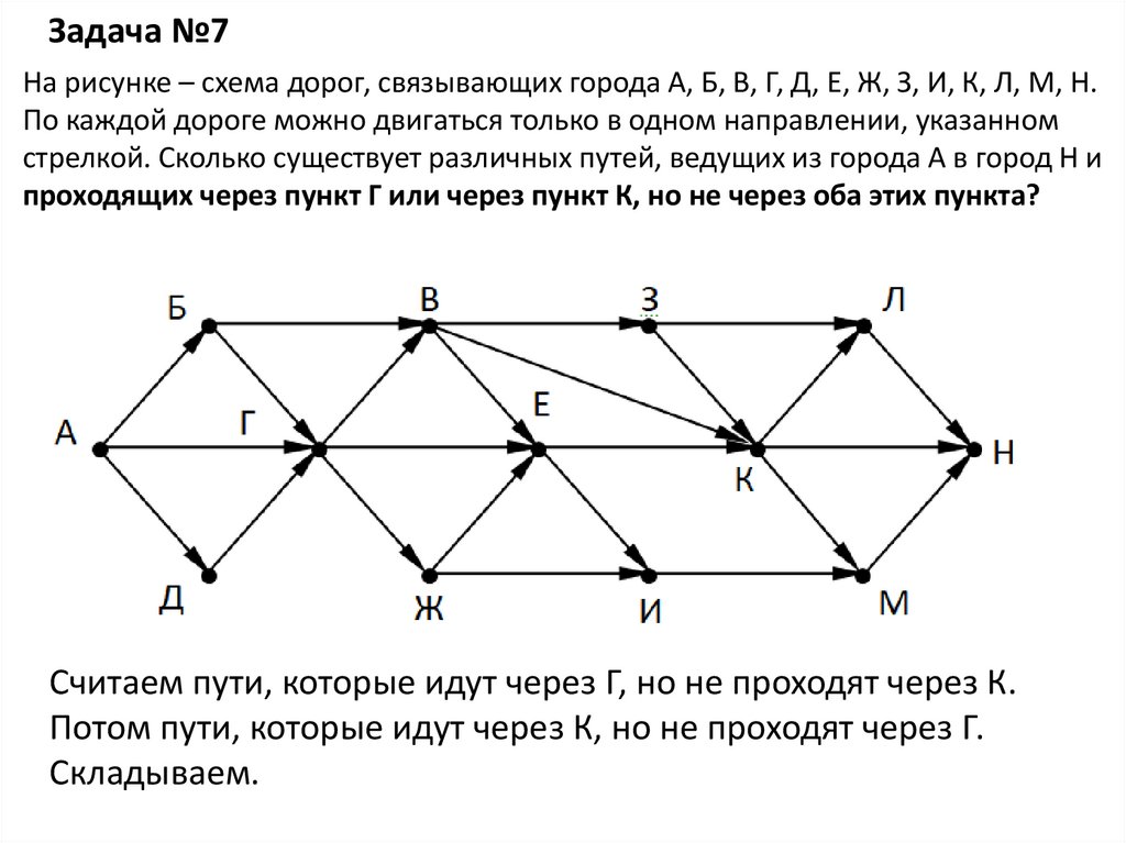 Задача №7На рисунке – схема дорог, связывающих города А, Б, В, Г, Д, Е, Ж, З, И, К, Л, М, Н.