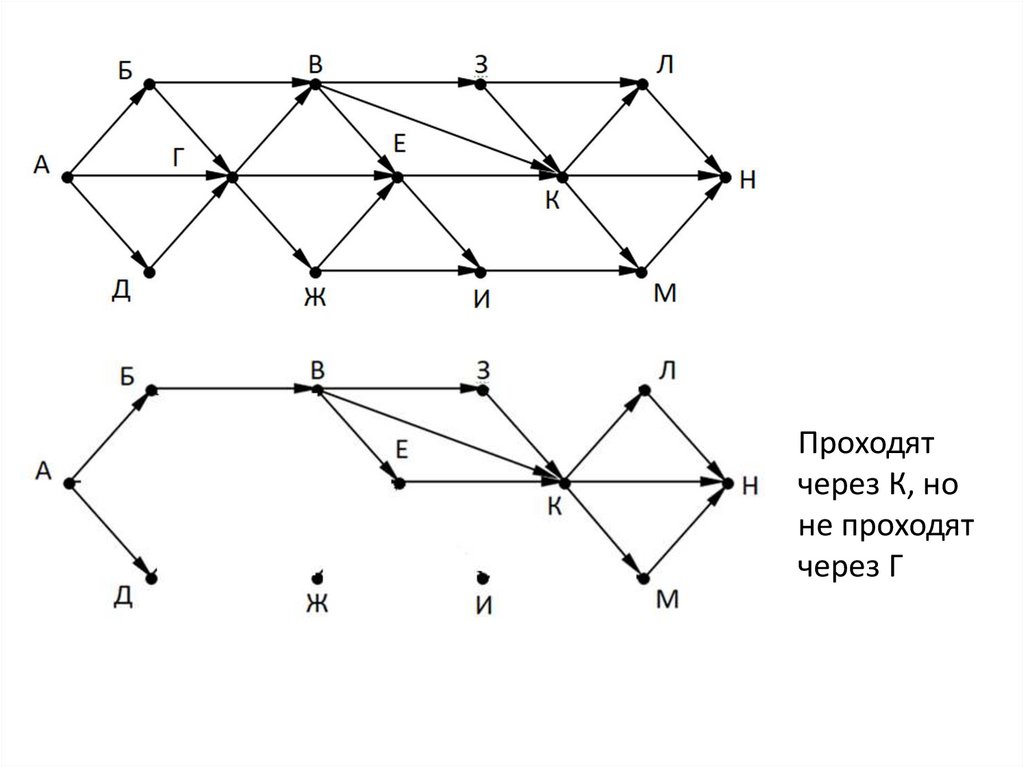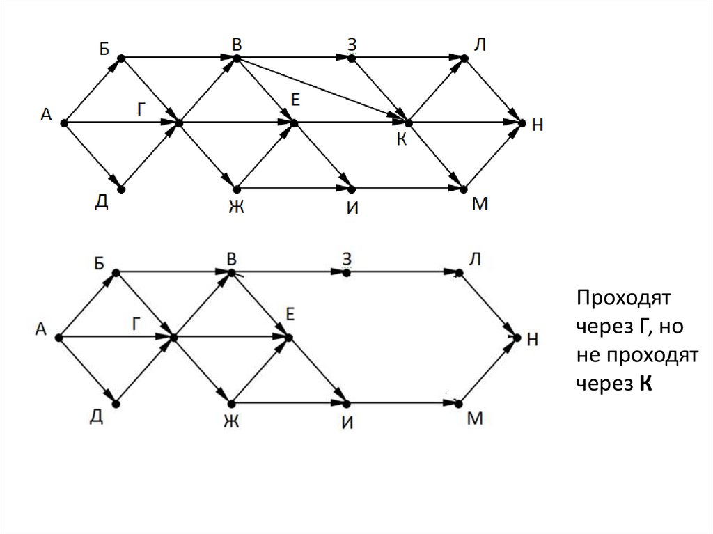 Потом пути, которые идут через К, но не проходят через Г.
